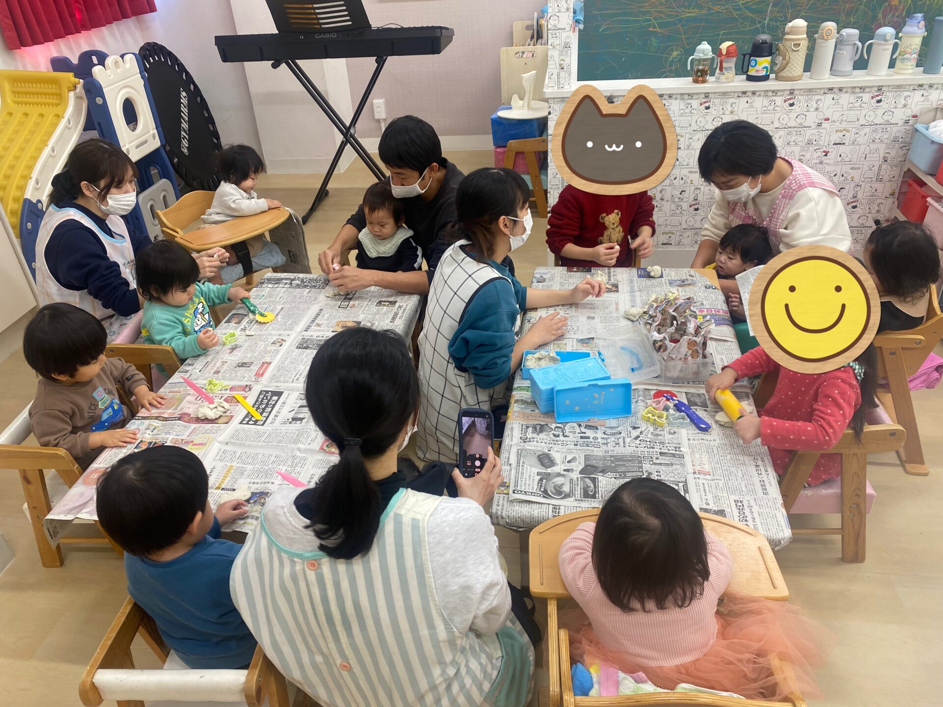 小さなお友達が増えてきているので、今回は触れる・握る・ちぎるといった感触を楽しむことを大切にしました🌱